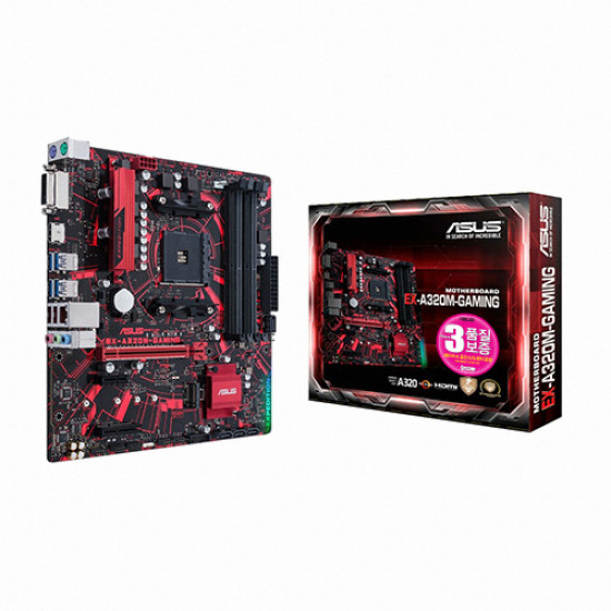 AMD(소켓AM4) / AMD A320 / M-ATX (24.4x24.4cm) / 전원부:6페이즈 / [메모리] / DDR4 / 2666MHz (PC4-21300) / 4개 / 메모리 용량:최대 64GB / [확장슬롯] / VGA 연결:PCIe3.0 x16 / PCIe버전:PCIe3.0,PCIe / PCIex16:1개 / PCIex4(at x2):1개 / PCIex1:1개 / [저장장치] / M.2:1개 / SATA3:4개 / M.2 연결:PCIe,SATA / [후면단자] / HDMI / DVI / USB3.x 5Gbps / USB 2.0 / RJ-45 / 오디오잭 / PS/2 / [랜/오디오] / 유선랜 칩셋:Realtek RTL8111H / 1Gbps / RJ-45:1개 / 오디오 칩셋:Realtek ALC887 / 7.1채널(8ch) / [특징] / LED라이트 / UEFI