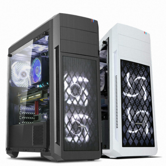 ATX 케이스 / 지원보드규격:ATX,M-ATX,M-ITX / VGA 길이:최대 370mm / CPU쿨러 높이:최대 159mm / 미들타워 / [패널] / 측면 패널 타입:아크릴 / [쿨러/튜닝] / 쿨링팬:총3개 / LED팬:3개 / 후면:120mm LED / 전면:120mm LED x2 / [크기] / 너비(W):194mm / 깊이(D):436mm / 높이(H):491mm / [호환성] / 지원파워규격:표준-ATX / 파워 위치:하단후면 / [부가기능] / 팬 컨트롤